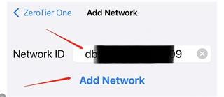 4、然后需要用户填入你的zerotier的16位ID,点addnetwork即可,下面有其它选项的不动。
